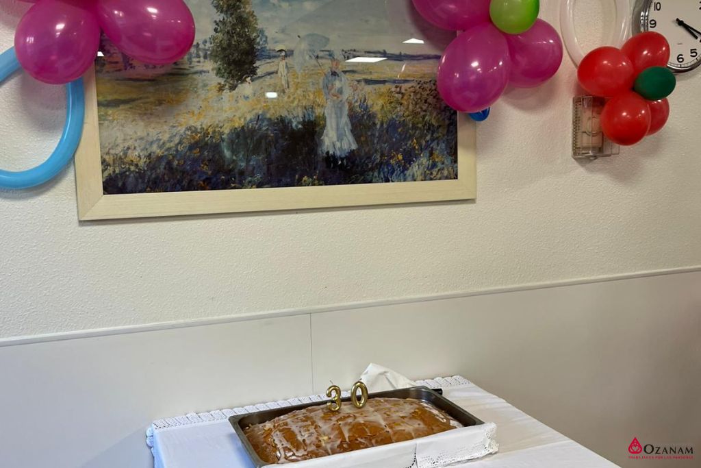 Para comenzar la celebración, residentes, profesionales y voluntariado compartieron un gesto tan sencillo como simbólico: preparar un bizcocho entre todos. Mientras se mezclaban ingredientes, surgieron recuerdos de aquellos bizcochos preparados años atrás para las familias, en un ambiente de risas y anécdotas compartidas. El resultado —por supuesto— se disfrutó después, convirtiéndose en un primer brindis por estos 30 años de historia.